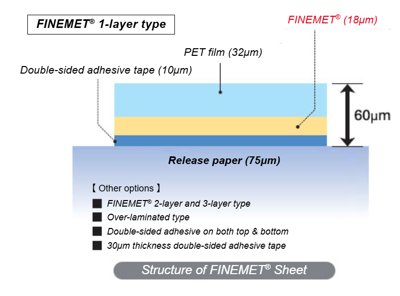 - Achieved thinner and lighter sheet with the high saturation magnetic flux density of our FINEMET® sheet (1.23T).