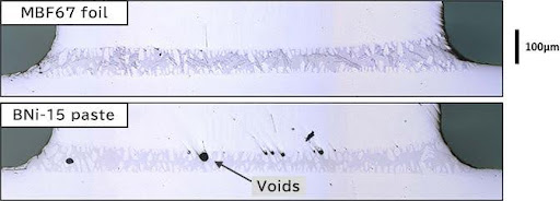 Since solder foil does not contain a binder like paste material, there are almost no voids (cavities) formed in the bonding layer due to the binder removal process, resulting in a highly reliable bonded product.