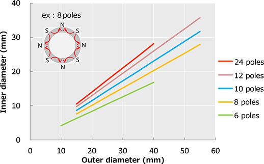 - Since the amount of magnetic flux leakage from the inner diameter is sufficiently small, non-ferromagnetic materials, such as resin, can be applied to assemble to rotor components.