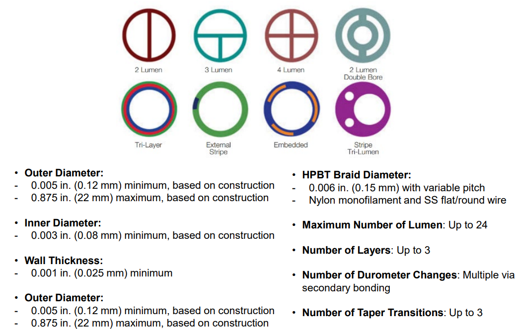 *Including multi-lumen, multi-layer assemblies