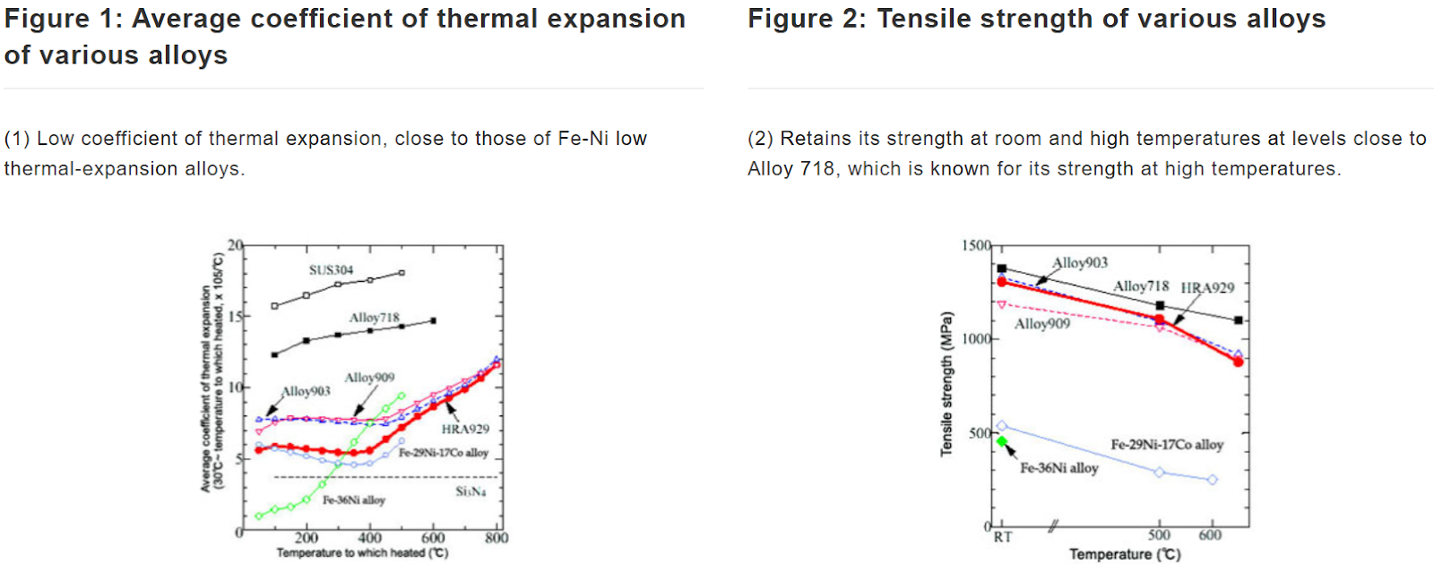 Based on these benefits, HRA929 can be combined with ceramics or glass and used in parts that need to show high strength at room and high temperatures, and in gas turbine equipment requiring tight clearance at high temperatures.
