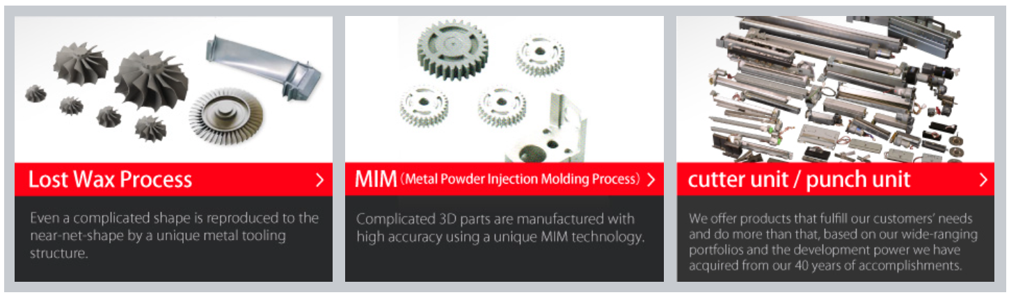 These products are made of nickel-based heat-resistant super alloy that exhibits superior resistance to heat. Investment casting is employed to produce complicated three-dimensional components through near-net-shape forming.